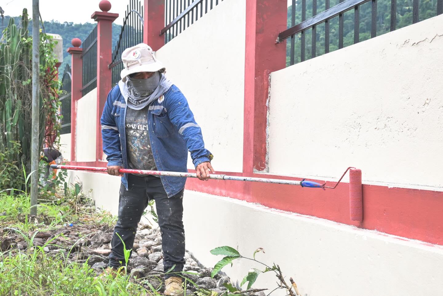 Nuestro equipo de obras públicas continúa realizando el pintado de la escuela “Padre Isassi”, la casa comunal y el puesto de salud en el sector El Pincho.