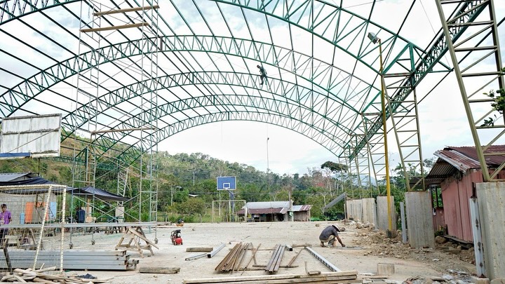 La nueva cubierta para la cancha de uso múltiple del barrio San Juan de Chicaña tiene un considerable avance de construcción.