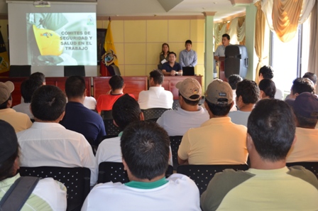 La capacitación estuvo a cargo del instructor Byron Viñan, Técnico de Riesgos en el trabajo de IESS, el tema a dictarse es sobre SEGURIDAD Y SALUD EN EL TRABAJO, el objetivo principal es dar a conocer las responsabilidades y garantías que deben tener los empleados y trabajadores para poder realizar un trabajo eficiente y eficaz.