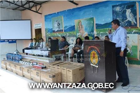 Robert Luzuriaga, Rector de la institución, exteriorizó su agradecimiento al Sr. Alcalde por trabajar por el sector educativo en este en este establecimiento. “En la administración que usted preside, se construyó las baterías sanitarias en la segunda planta, el puente pasarela que une el bloque uno con el dos, colocación de cerámica en todas las aulas y comedores, cinco mil dólares en material para el proyecto de mecánica, pasarela que une la pasarela con el bar y en esta ocasión con estos equipos informáticos, gracias por todo el trabajo que nos ha brindado” manifestó el dirigente.