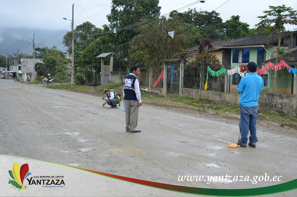 Previo al diálogo sostenido con el representante de la E.P Vialzachin EP Zamora Chinchipe, técnicos del GAD Municipal del cantón Yantzaza realizan los estudios Topográficos, para el asfaltado de la calle Tungurahua del barrio Pitá.