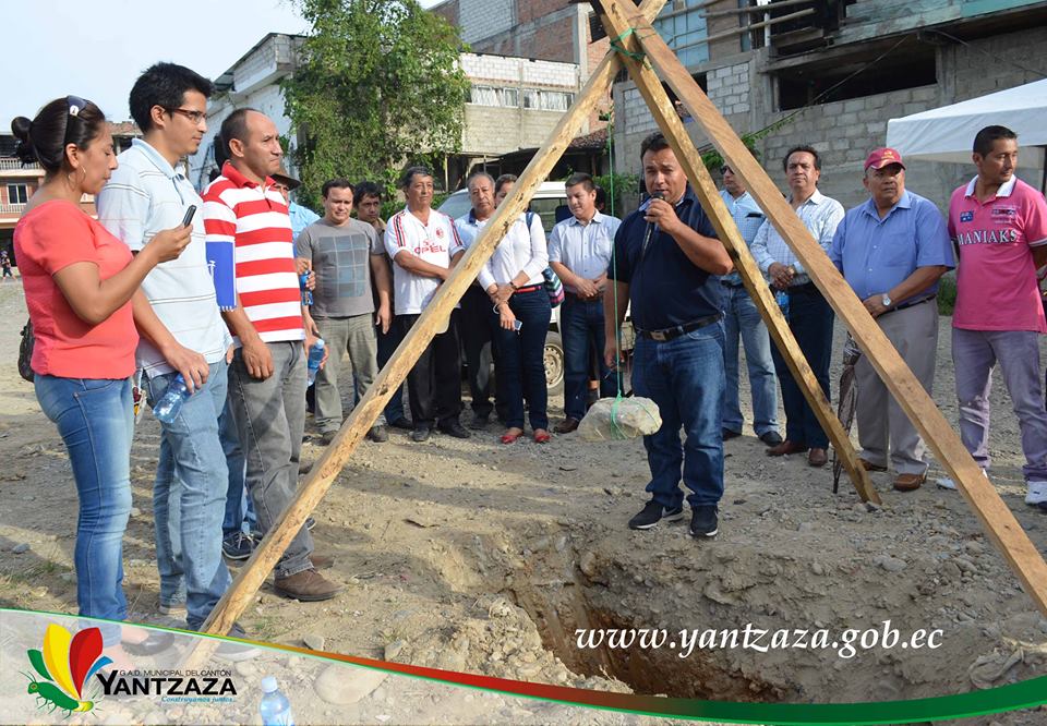 Con la presencia del señor alcalde Bladimir Armijos Vivanco, los concejales Manuel López y Vladimir Chacha, directores departamentales, servidores de la institución municipal y ciudadanía del cantón Yantzaza, se llevó a efecto la colocación de la primera piedra para la construcción del Malecón de la quebraba Yantzaza.