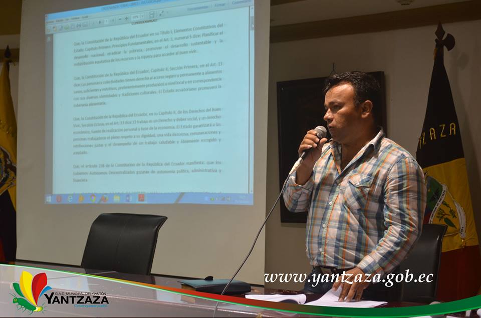 Dos proyectos de ordenanza fueron socializados este lunes 26 de octubre, esto cumpliendo lo que exige la Ley Orgánica de Participación Ciudadana, que en uno de sus artículos menciona la necesidad de que las normativas planteadas deben ser conocidas y tener el aporte ciudadano. La primera es para regular y suministrar espacios para las actividades de los comerciantes que tienen sus espacios fijos en la Feria Libre que se desarrollan los días domingos en la ciudad de Yantzaza, mediante la Reforma a la Ordenanza para el Funcionamiento y Administración de la Feria Libre y del Pequeño Productor del cantón Yantzaza, a esta reunión de trabajo estuvieron presentes Bladimir Armijos alcalde, concejales, funcionarios y ciudadanía en general.
