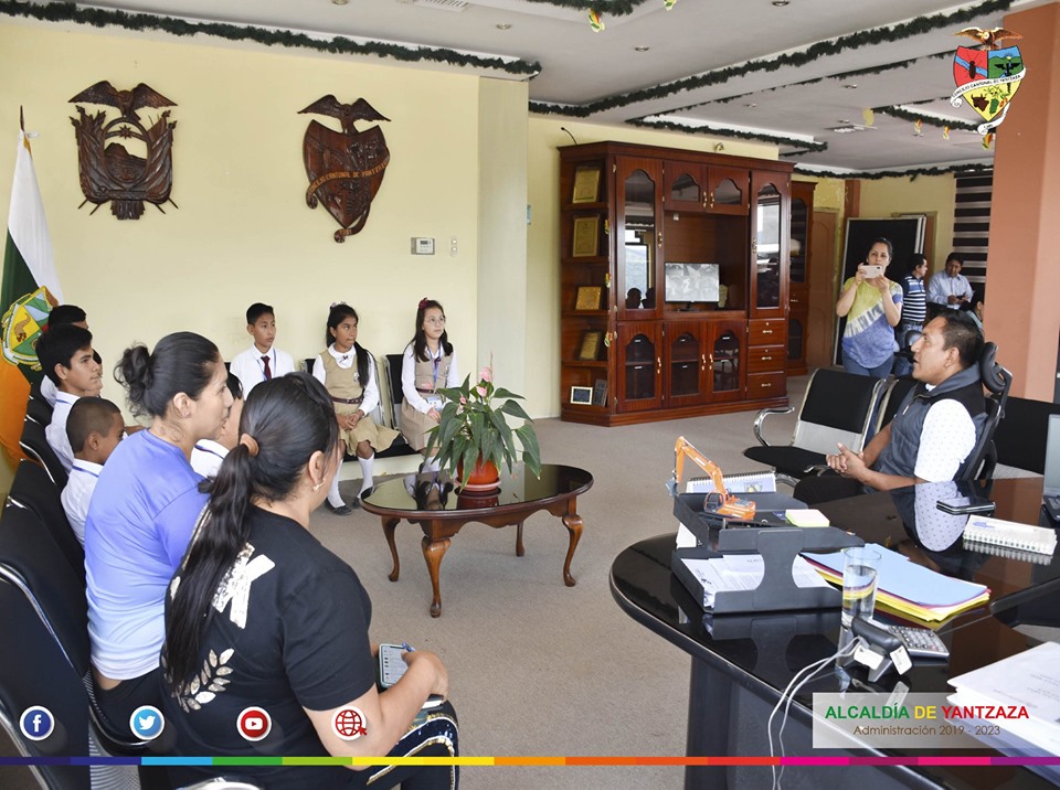 Esta mañana, los alumnos del Consejo Estudiantil de la Escuela General Rumiñahui, junto a varios docentes y padres de familia, visitaron la Alcaldía de Yantzaza. El alcalde Jimenez Martin, los recibió y compartió un diálogo ameno con el grupo.