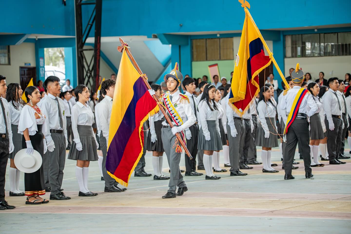 La alcaldesa María Lalangui participó en el acto solemne del Juramento a La Bandera realizado en la Unidad Educativa Primero de Mayo. ¡Amor y civismo a la Bandera Nacional¡