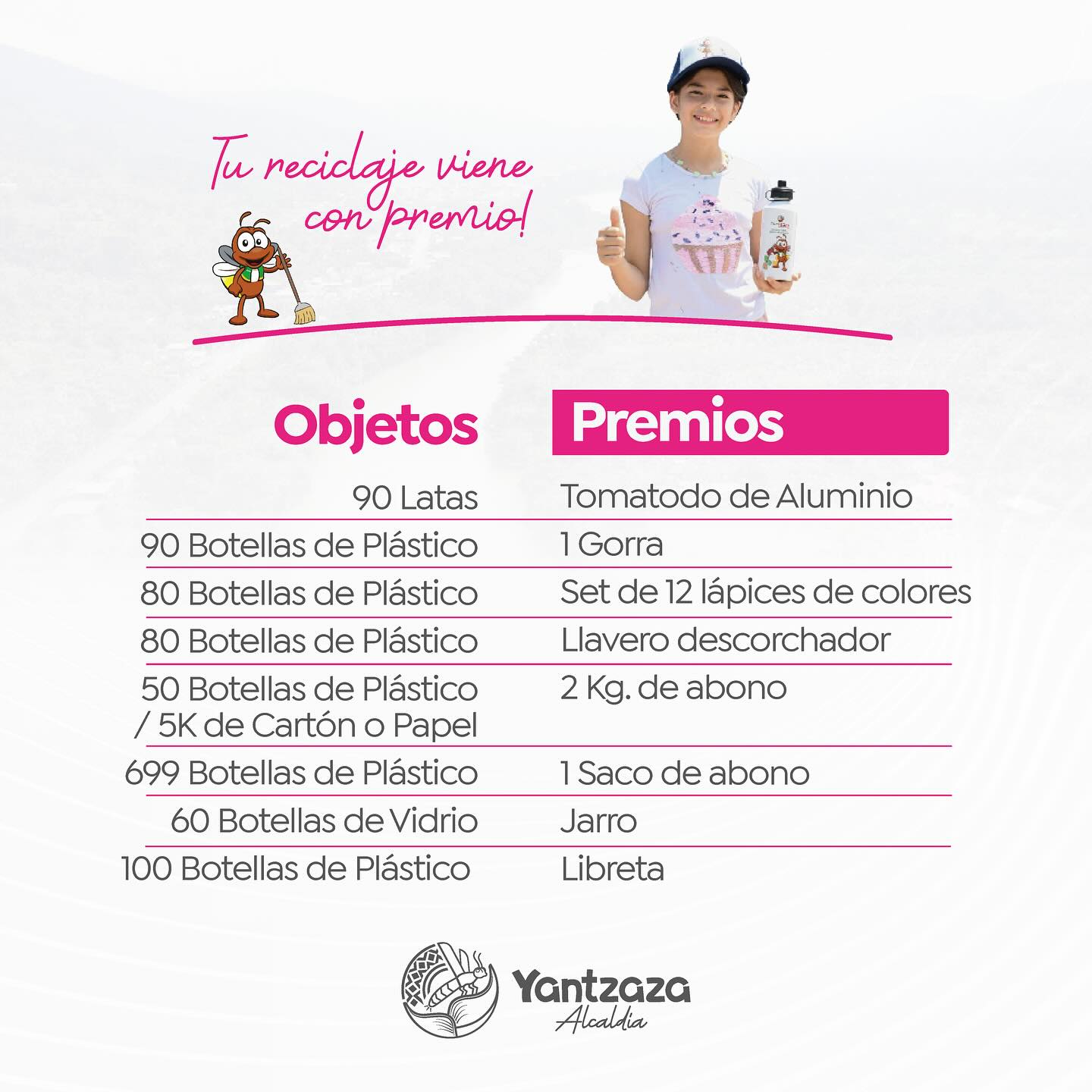 Te esperamos este viernes, 4 de abril, en el Parque Central de Yantzaza para canjear tu reciclaje con premios.